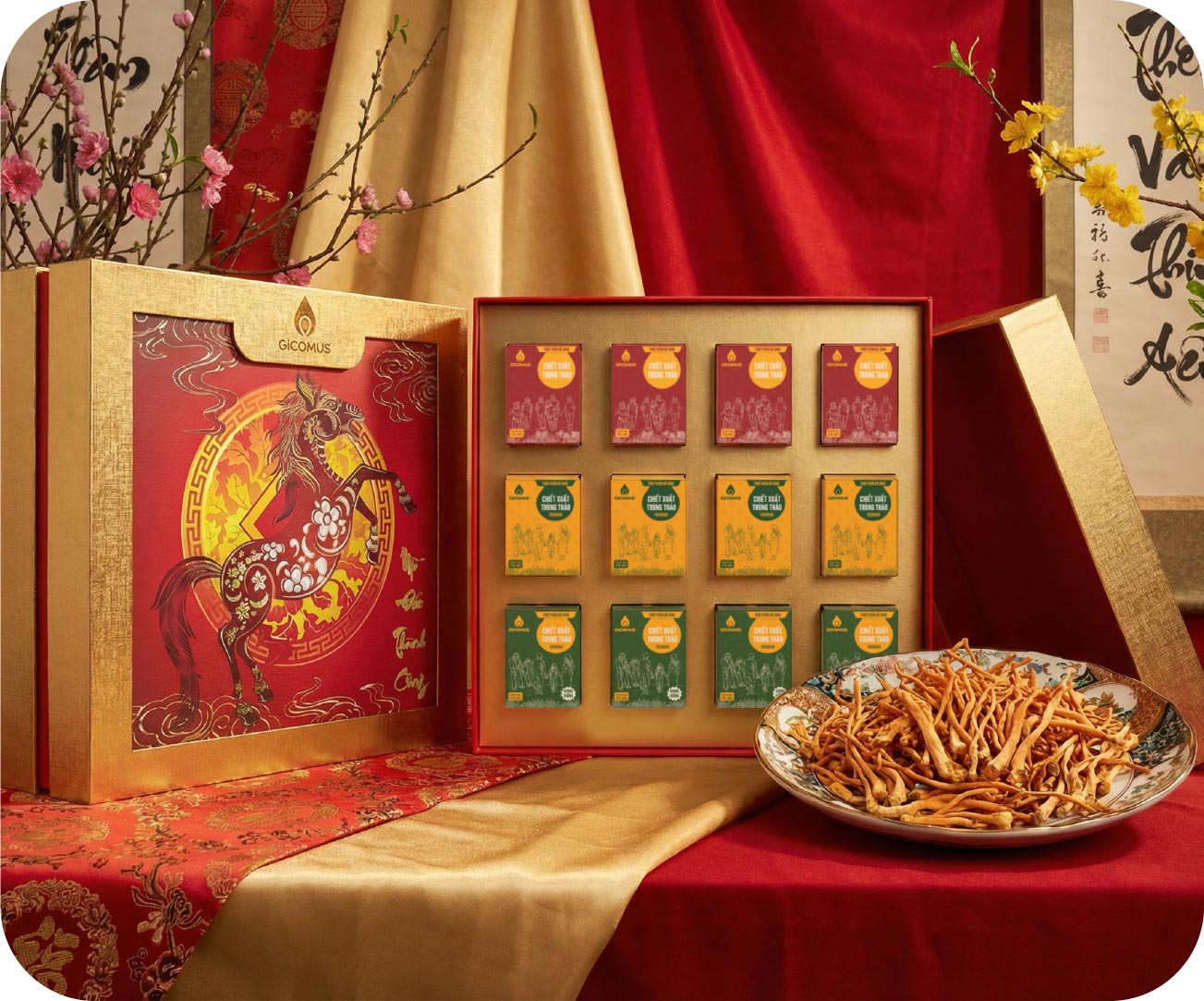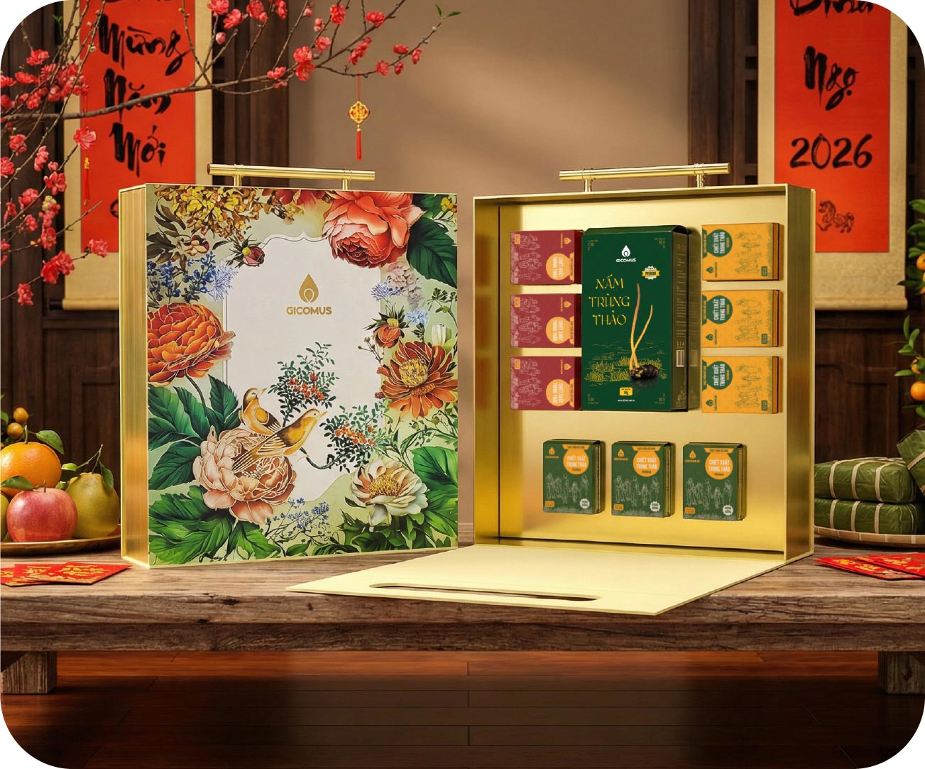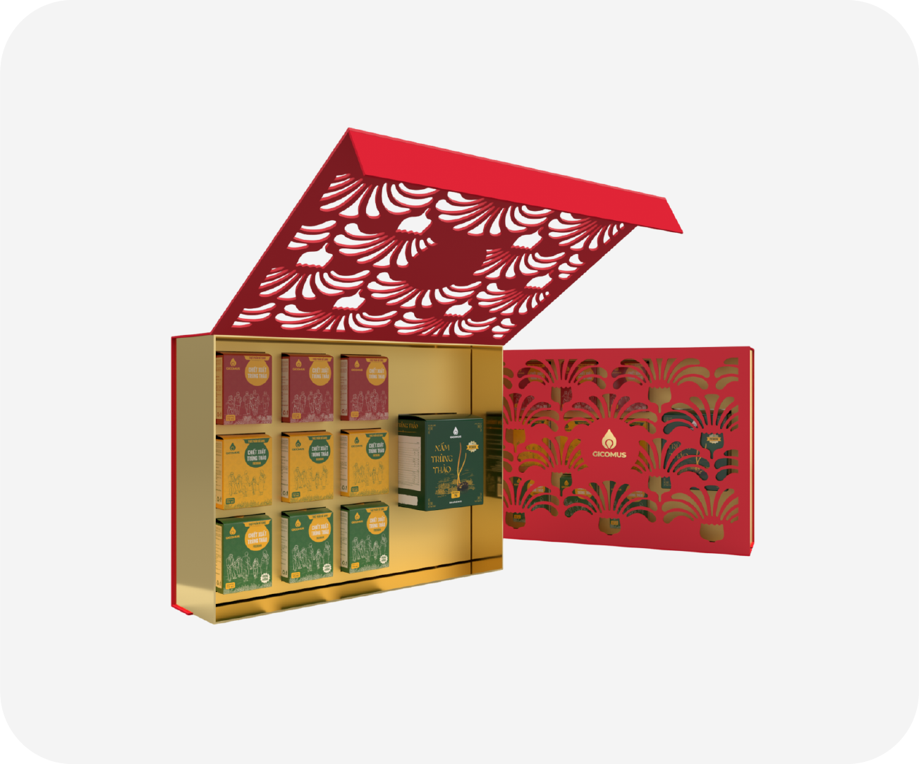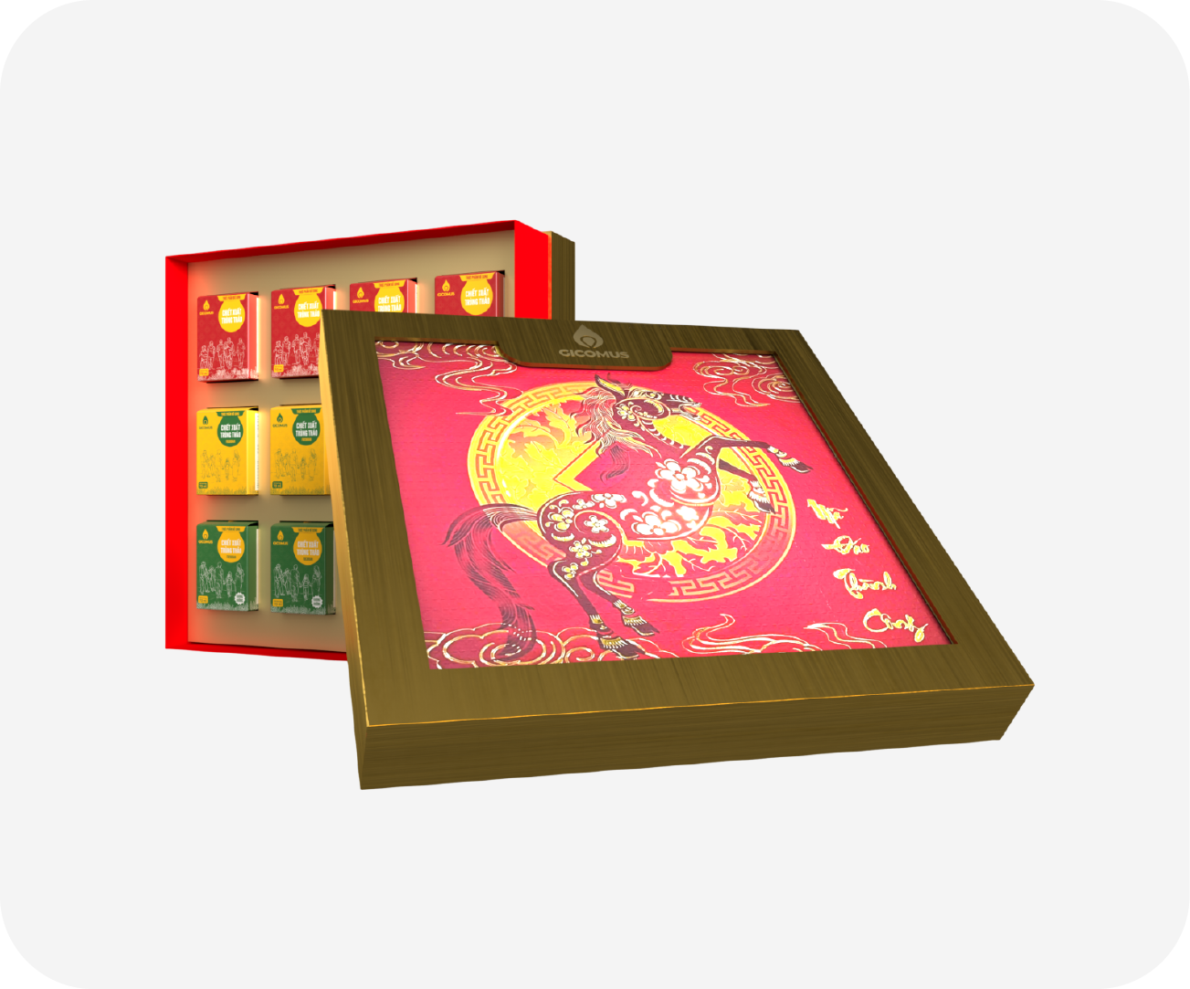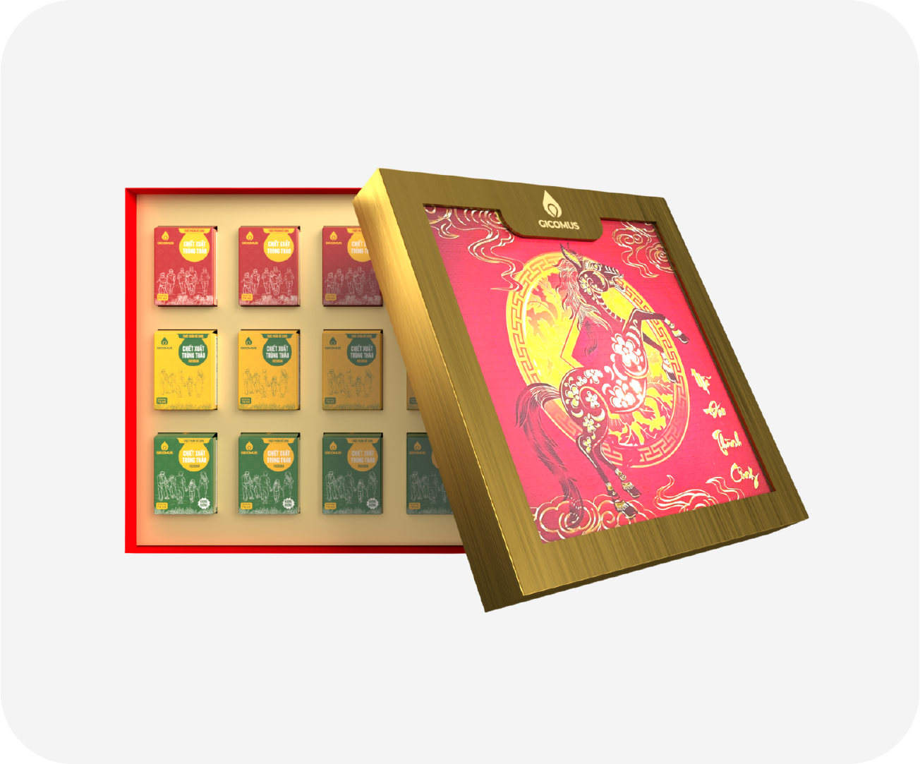 Lấy cảm hứng từ nguồn “dưỡng chất xanh” và lời chúc Xuân an lành: bộ quà tết Xuân An Lành của Gicomus được thiết kế như những giọt năng lượng khoẻ mạnh, anh lành cho một năm mới dồi dào thể lực, nâng sức đề khánh và mang lại cảm giác an tâm cho người nhận, từ gia đình đến doanh nhan, đội ngũ nhân sự hay đối tác, khách hàng..