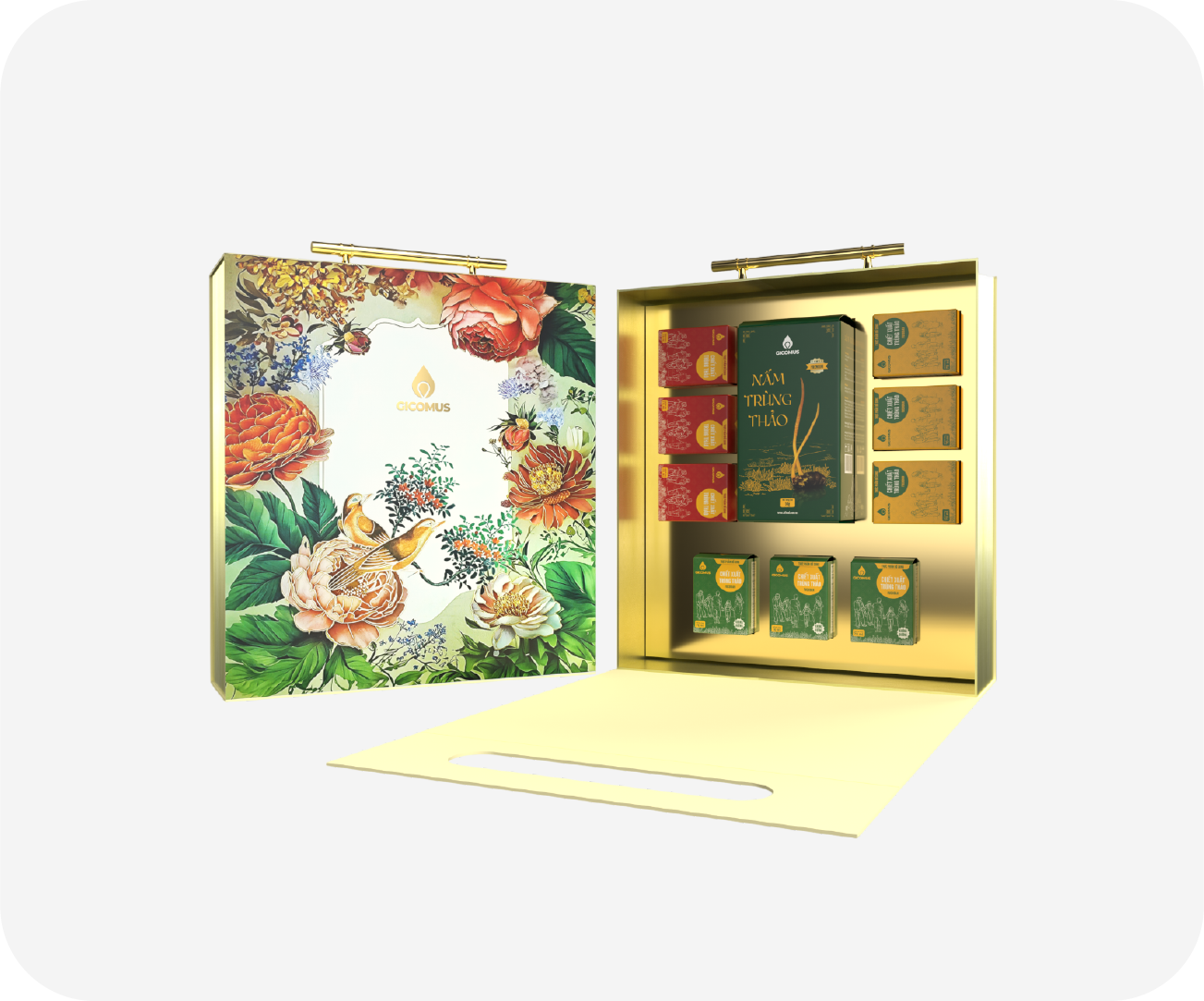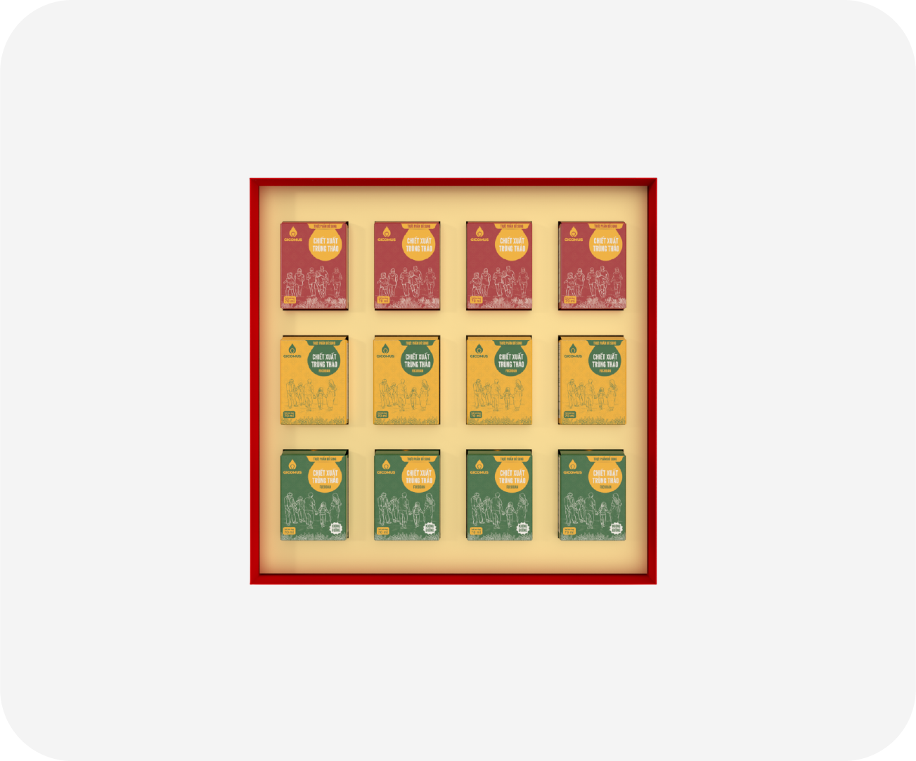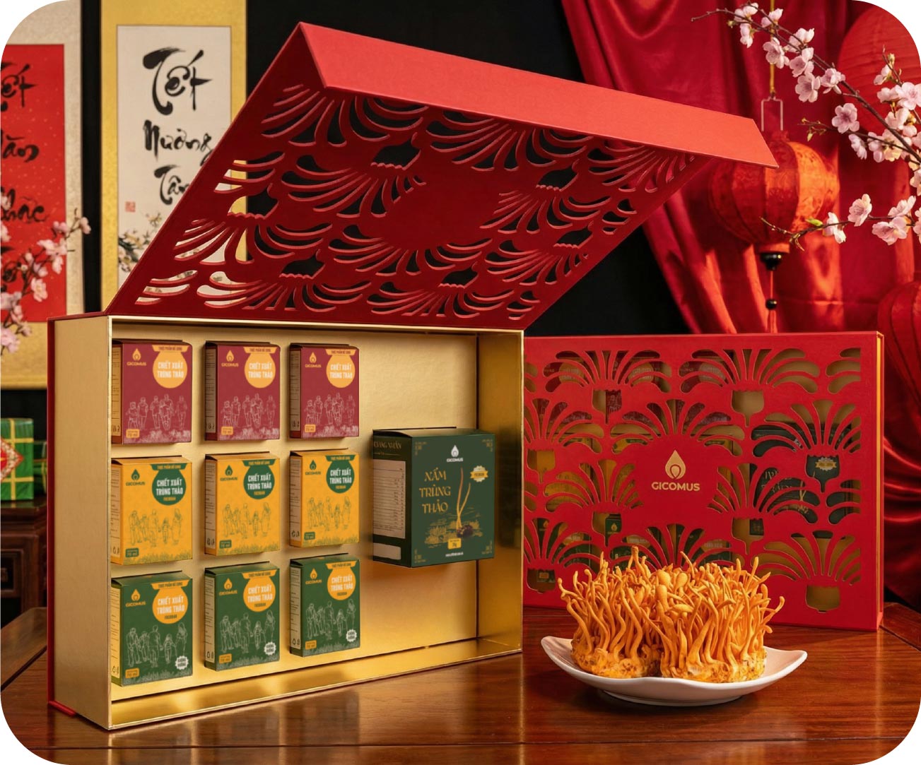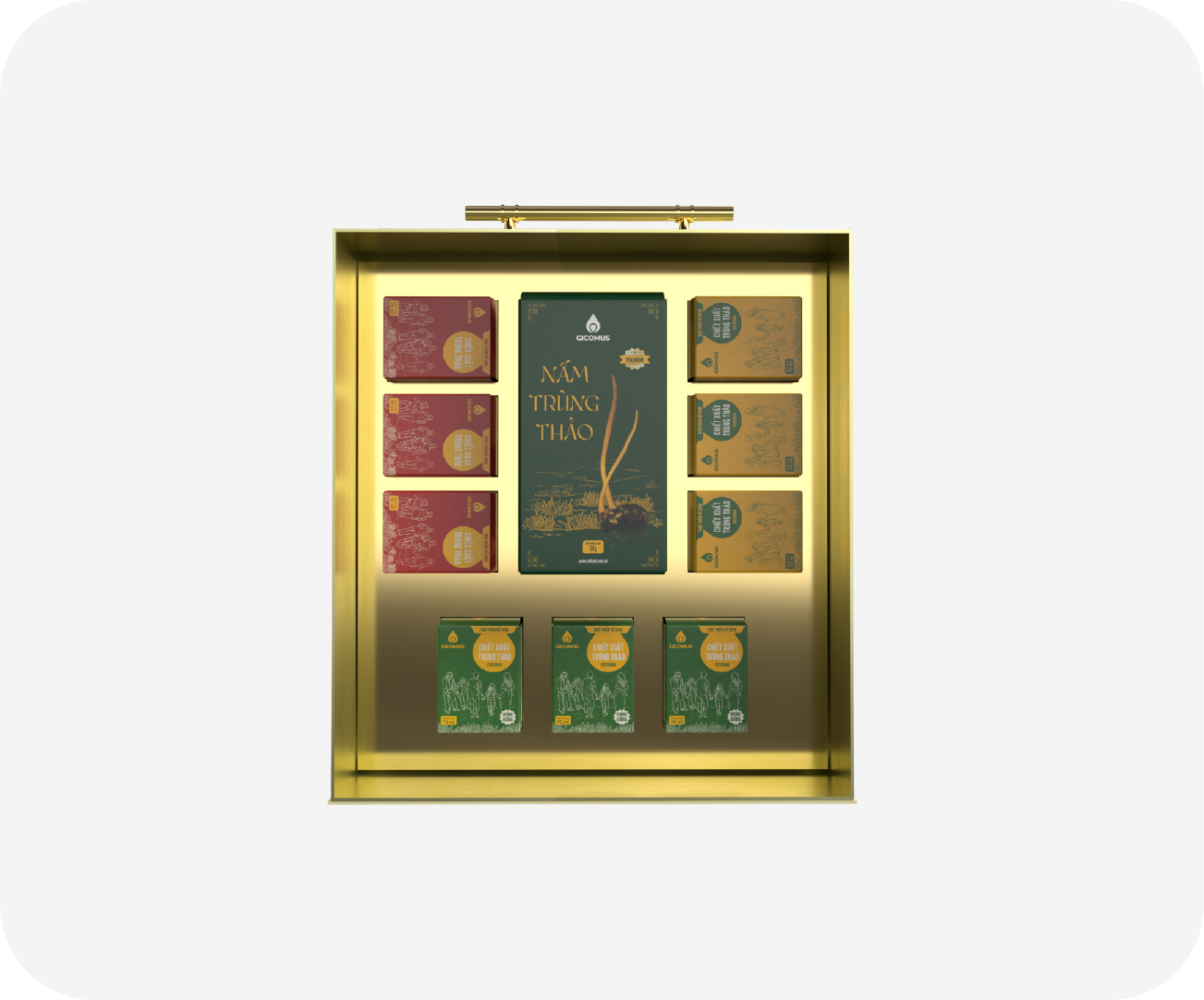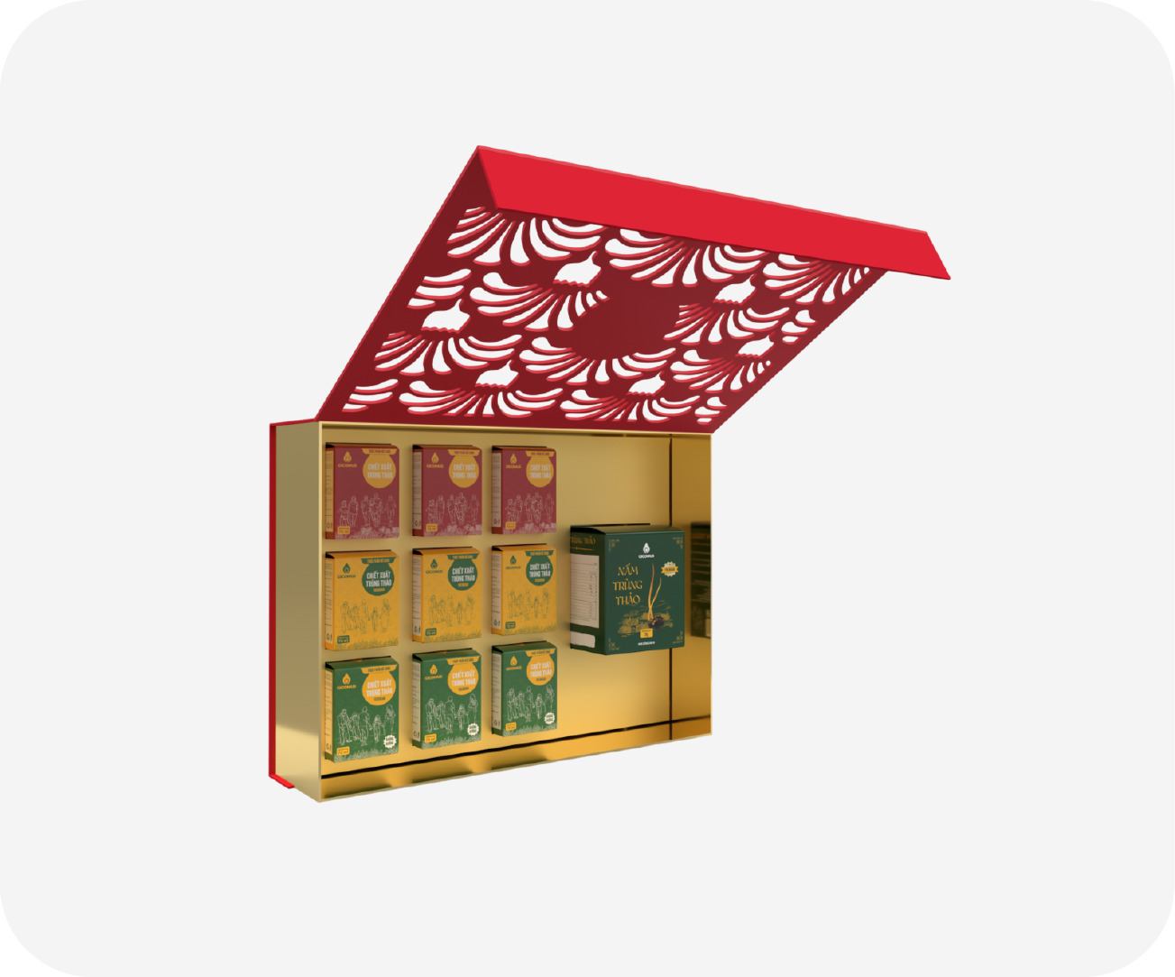 Lấy cảm hứng từ nguồn “dưỡng chất xanh” và lời chúc Xuân an lành: bộ quà tết Xuân An Lành của Gicomus được thiết kế như những giọt năng lượng khoẻ mạnh, anh lành cho một năm mới dồi dào thể lực, nâng sức đề khánh và mang lại cảm giác an tâm cho người nhận, từ gia đình đến doanh nhan, đội ngũ nhân sự hay đối tác, khách hàng..